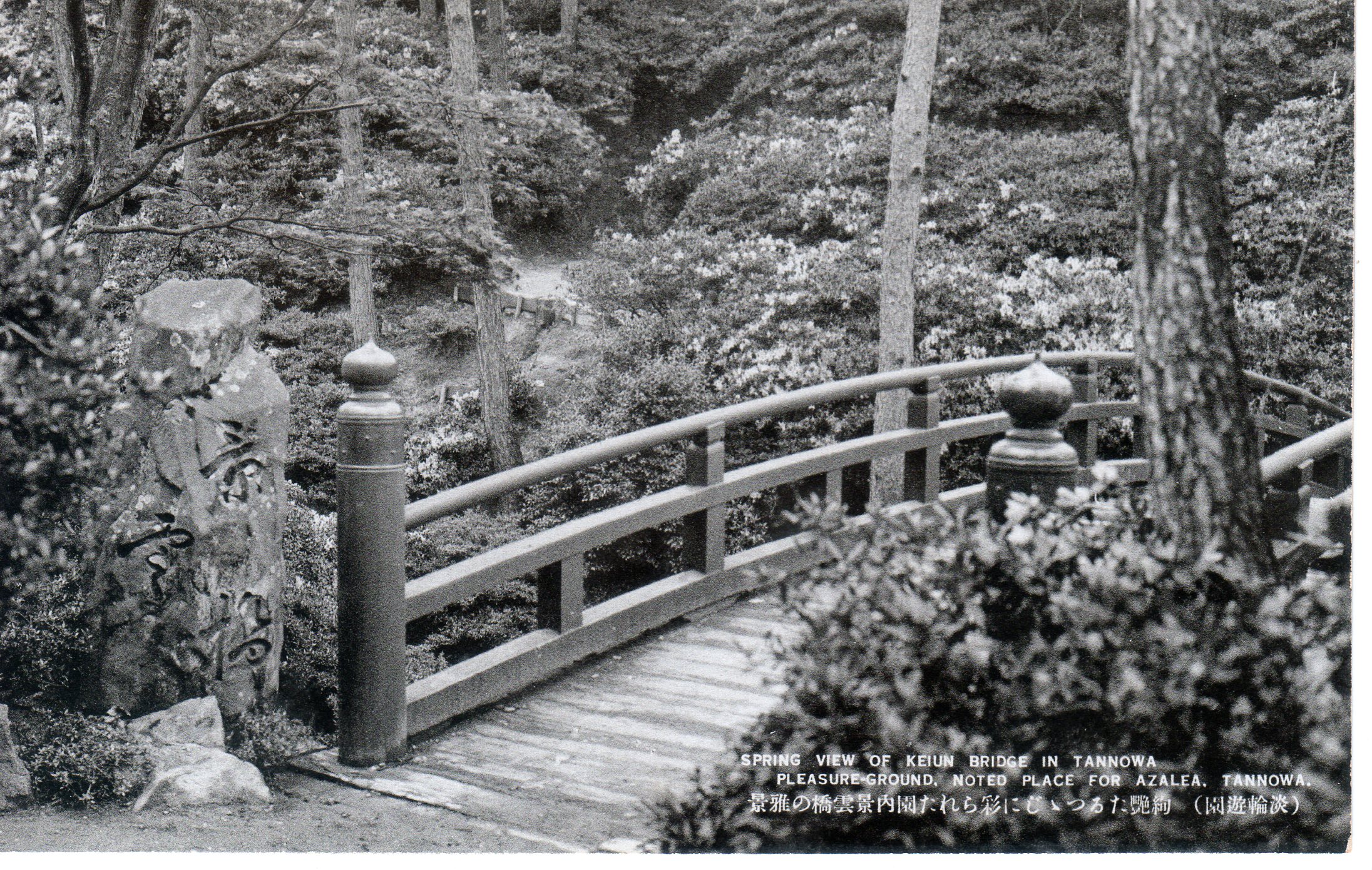 艶たるつつじに彩られた園内景雲橋の雅景
