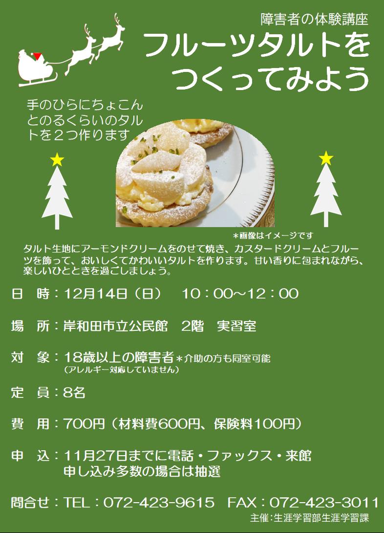 障害者の体験講座「フルーツタルトをつくってみよう」開催のお知らせ
