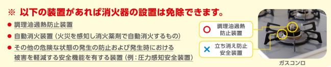 火を使用する設備又は器具に調理油過熱防止装置などが設けられている場合は、消火器の設置義務が免除されます。