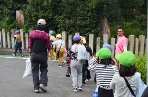 学校からファームまでの道中そこかしこで、ピンクのTシャツを着た地域の「おむすび会」の方や派出所のおまわりさんが見守ってくださっている様子を見て、東葛城小学校校区の地域の繋がりの濃さ、温かさを感じました。