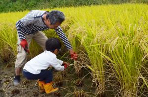 一般応募で和泉市から参加していた母子は稲刈り初体験。「毎日当たり前のように食べているお米ですが、最近では稲穂を見ることもなくなってきたので、貴重な経験になりました」と話してくれました。