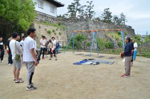 6月16日(日曜日)、岸和田城近隣の町会長などで構成される団体「百間堀の会」と中央校区の青年団、小学生、市職員など約40人が集まり、お堀の清掃活動を行いました。