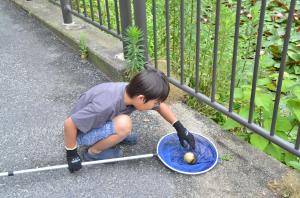 お堀に浮いているごみは、ボートを3艘出して拾うのですが、スイレンがびっしり水面を覆っているせいか、なかなか思うように進みません。この日は湿度が高くとても暑い日で、皆さん大汗をかきながらボートの方向転換に悪戦苦闘していました。ごみ拾いが終わりボートから降りてきた小学生の男の子は「暑かった~!足もドロドロ~」と笑っていましたが、お堀がきれいになって嬉しそうでした。
